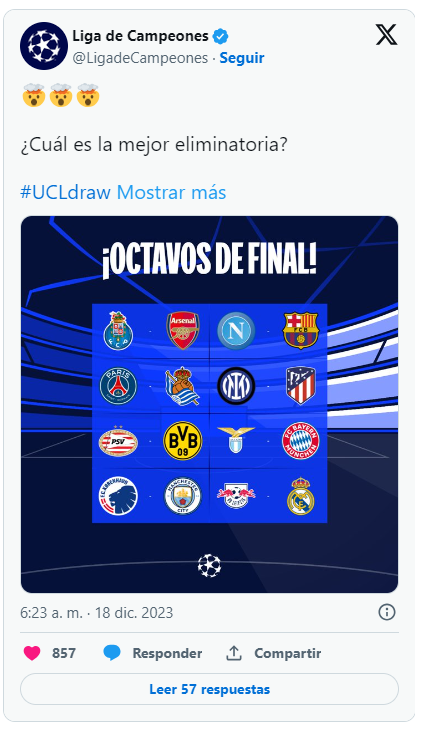 En este sorteo, el aún campeón de la Liga de España, Barcelona, regresa a una ronda de octavos de final donde se verá ante el Napoli. La última ocasión que se vieron fue en la ronda de octavos de final de la edición 2019-2020, donde Barcelona avanzó por global de 4-1.