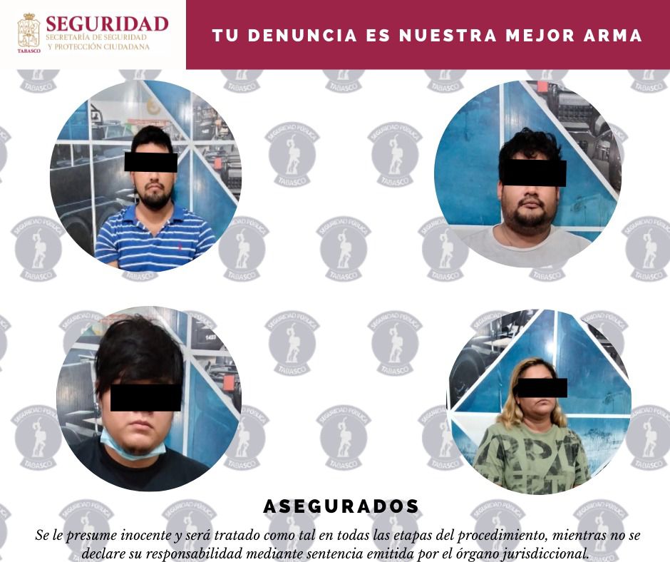 En otra acción policial, los policías preventivos aseguraron a María del Rosario “N”, Jonathan de Jesús “N” y Jese Felipe “N” en la colonia Tamulté.