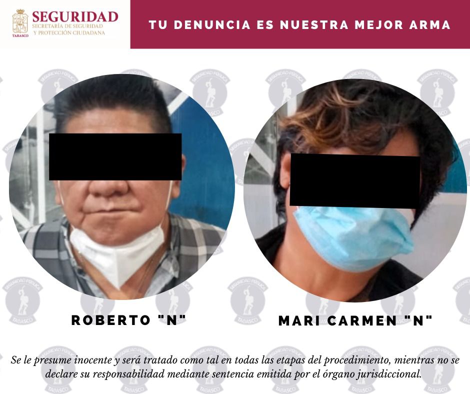 En hechos distintos, los elementos detuvieron a Mari Carmen “N” en la tienda Walmart de la colonia Casa Blanca y en Infonavit Atasta, fue asegurado Roberto “N”.