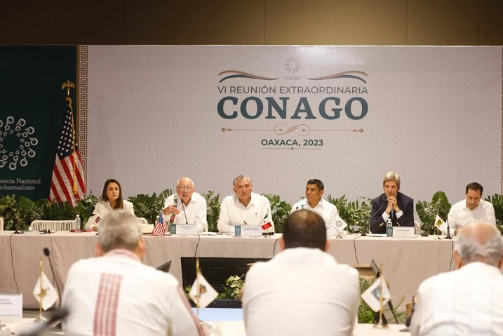 El mandatario tabasqueño participó en la VI Reunión Extraordinaria de la Conferencia Nacional de Gobernadores celebrada en el estado de Oaxaca; estuvieron presentes el secretario de Gobernación, Adán Augusto López Hernández y autoridades del país norteamericano