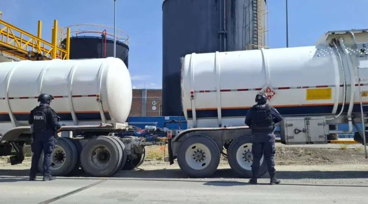 En el lugar se encontraron nueve tanques cisterna, además de cinco pipas, cuatro vehículos tipo full, tres tractocamiones y tres tanques de transporte, junto con maquinaria de trasvase y despachadores industriales.