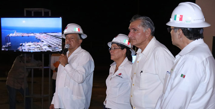 Acompañado por el gobernador de Tabasco, Adán Augusto López Hernández, el mandatario federal conoció en voz de la titular de la Sener, Rocío Nahle García, los avances que presenta la magna obra que impulsará la producción de petróleo y permitirá a nuestro país recuperar el liderazgo mundial que tuvo en años anteriores en la industria energética.