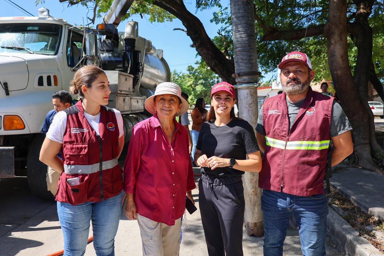 Acompañada de los vecinos que solicitaron estos trabajos, a quienes escuchó y solucionó sus demandas, la Primera Autoridad Municipal reiteró su compromiso de seguir trabajando por un mejor Cancún, con un gobierno de puertas abiertas para todas y todos, afirmando que en lo que va del 2025 se han realizado 220 desazolves en diversas colonias de la ciudad.