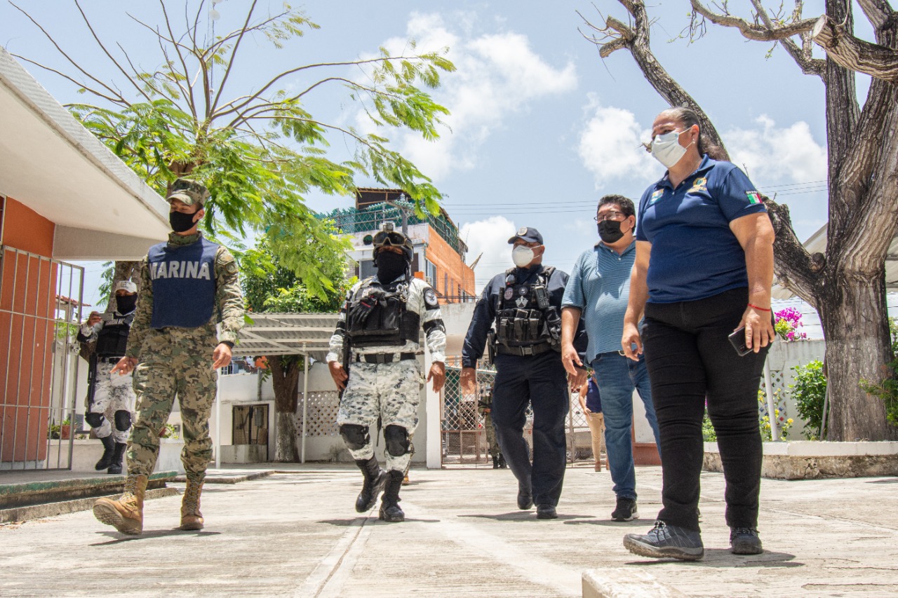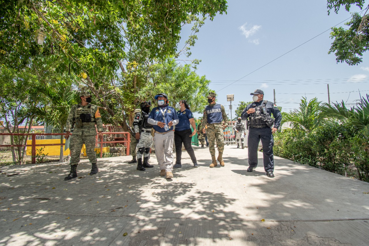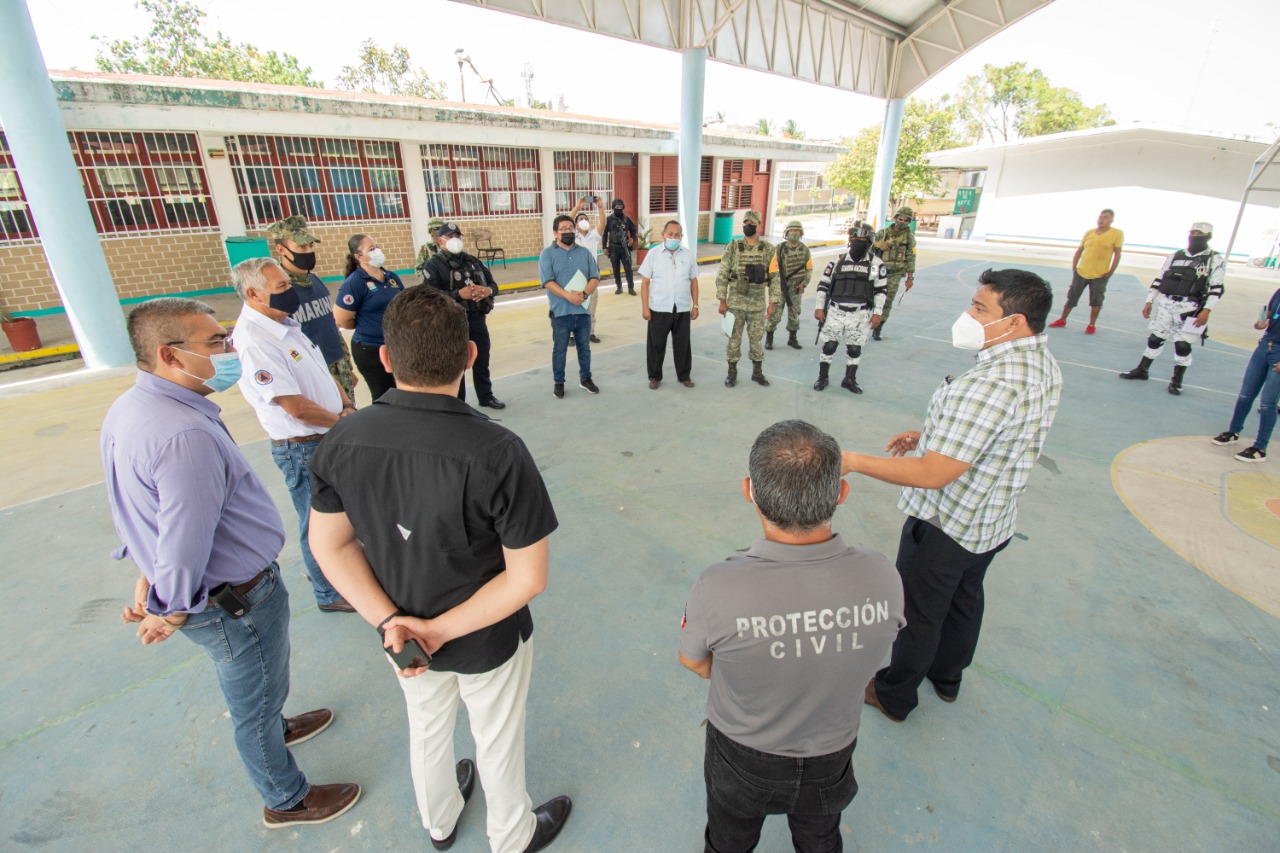 El recorrido fue con el objetivo de verificar que los refugios cuenten con servicios de agua potable y electricidad, puertas y ventanas seguras, así como realizar el mantenimiento y poda de maleza, debido a que son escuelas que llevan cerradas más de un año por a la pandemia.