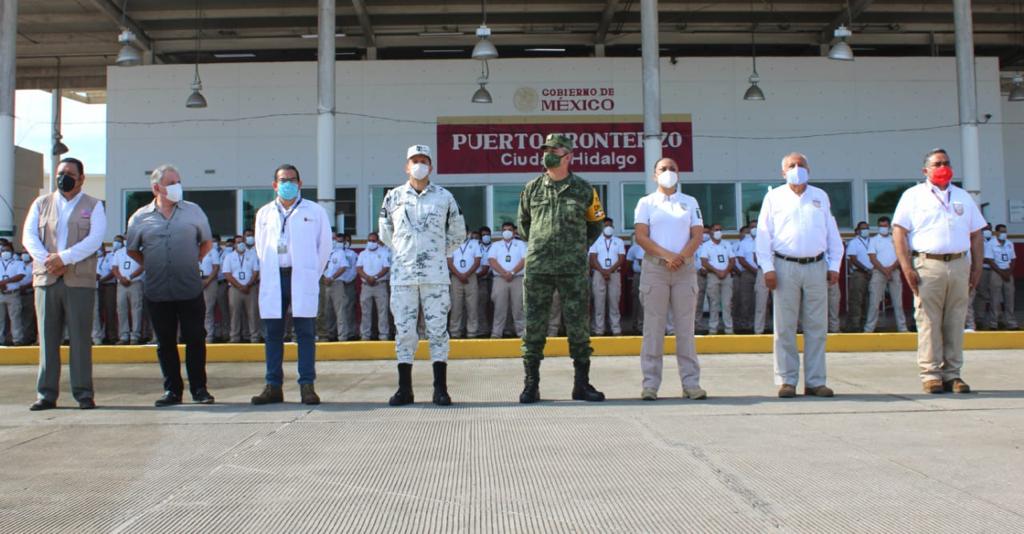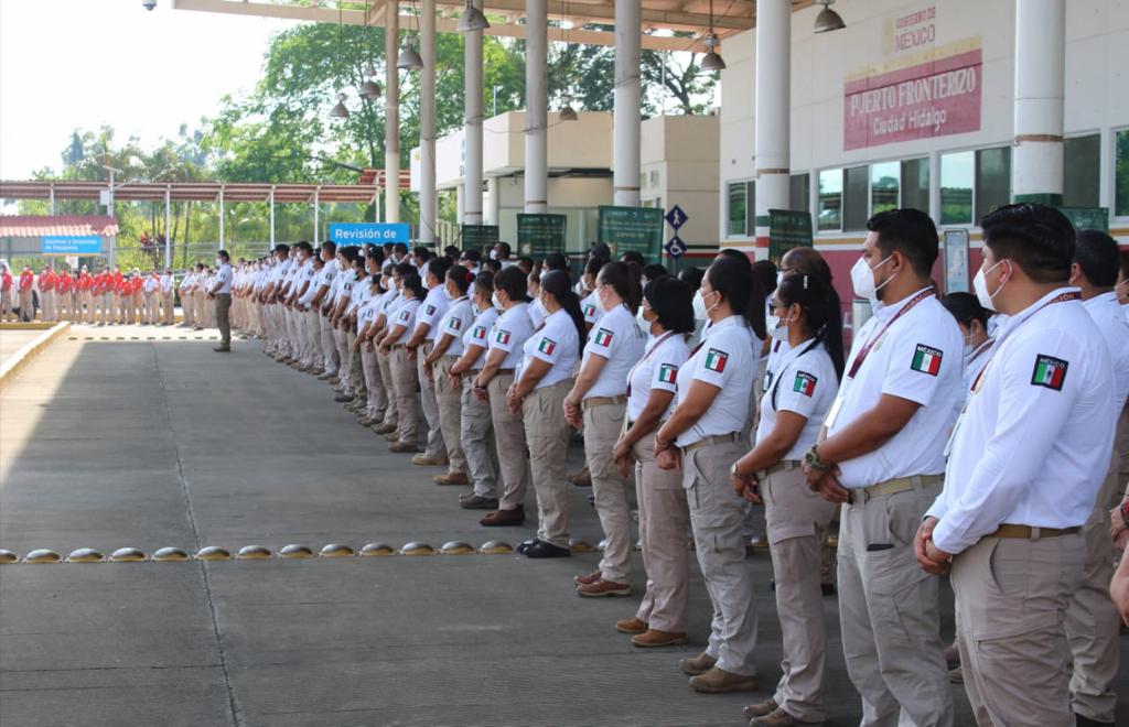 Ante el comandante de la 36/a Zona Militar de Tapachula, general Vicente Antonio Hernández Sánchez, efectuó pase de lista a cientos de agentes federales de migración, en Ciudad Hidalgo, que tienen la labor de hacer respetar la Ley de Migración y su reglamento, a fin de mantener un tránsito por el país seguro, ordenado y regular.