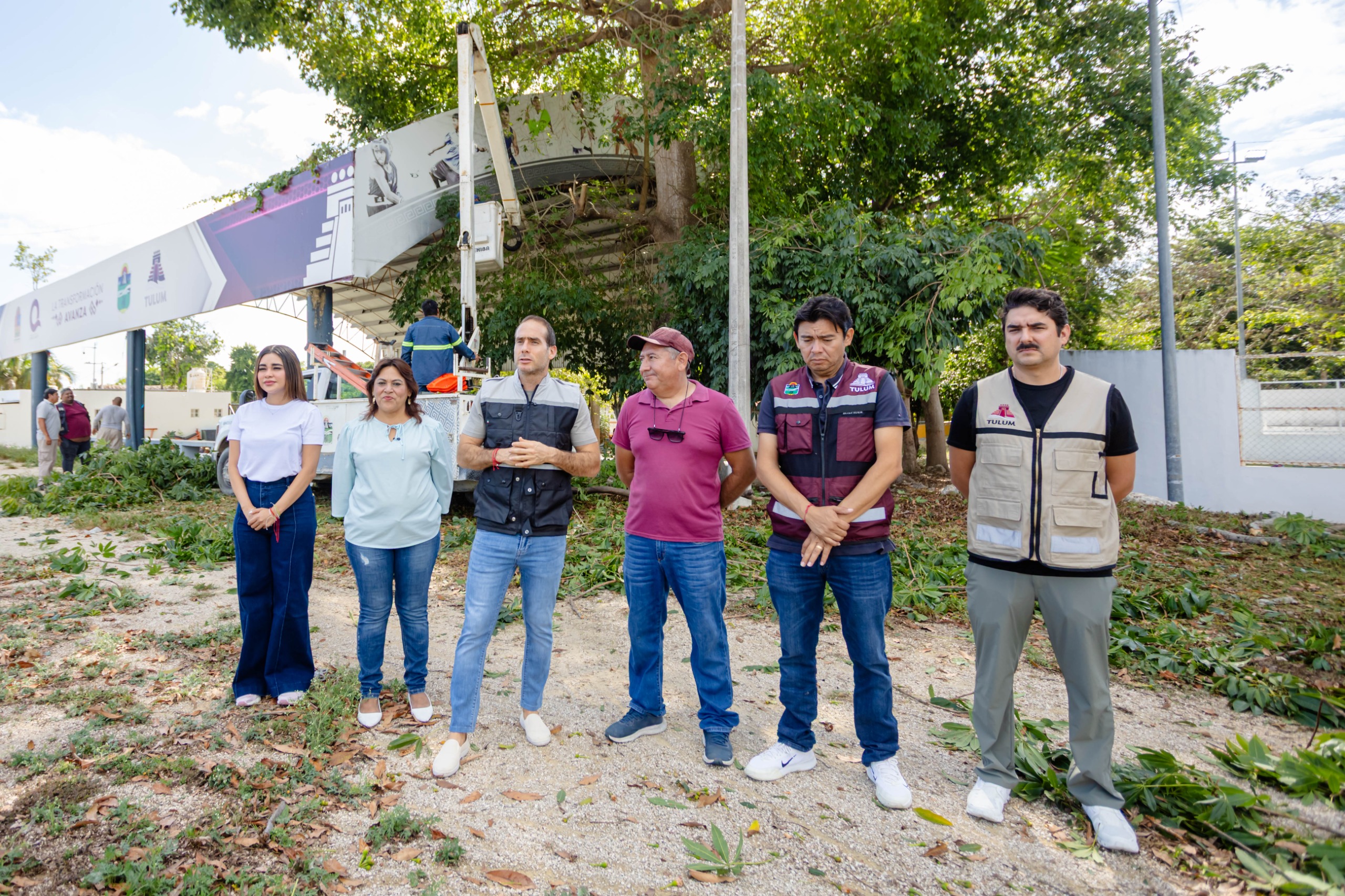 “Estamos aquí en Chemuyil recorriendo la cancha de béisbol, cambiando lámparas, realizando poda y rehabilitando este campo. Todo esto lo hacemos porque fue algo que nos externaron durante las caminatas que realizamos, así como por la comunicación y coordinación que mantenemos con nuestros delegados”, expresó el presidente municipal.