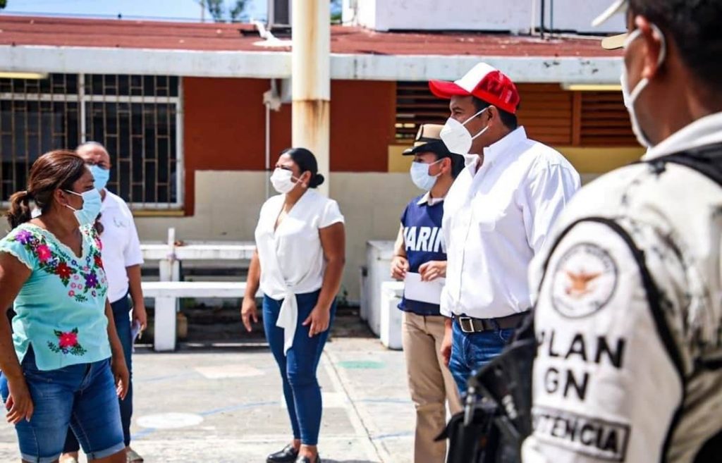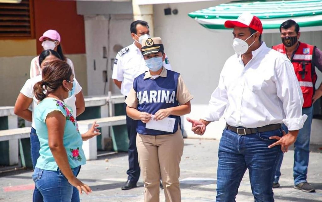 Isla Mujeres, Q. Roo, Jueves 23 de julio de 2020, poderycrítica.- El presidente municipal de Isla Mujeres, Juan Carrillo Soberanis, acompañado por elementos de corporaciones del Gobierno Federal recorrió los puntos de refugio anti huracanes en la insula.