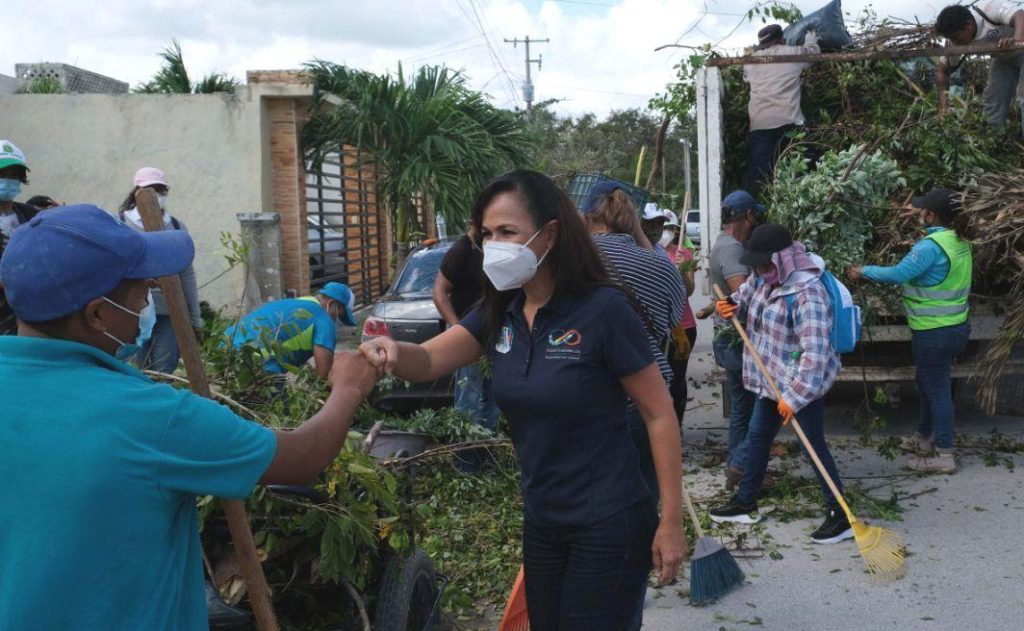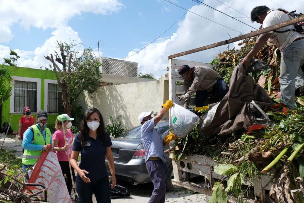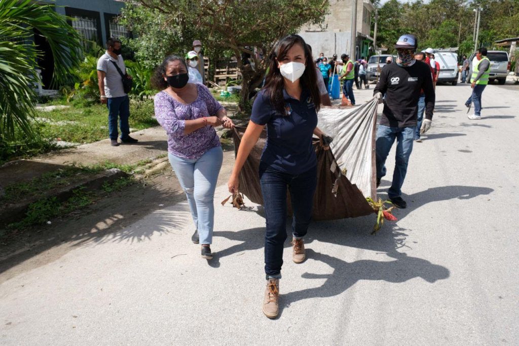 Ahí, la Presidenta Municipal saludó a vecinos, quienes se sumaron a las labores de poda, barrido y limpieza, al tiempo de agradecer la reacción de las autoridades locales antes, durante y después del impacto de tres fenómenos hidrometeorológicos en menos de 25 días: la tormenta tropical “Gamma” y los huracanes “Delta” y “Zeta”.