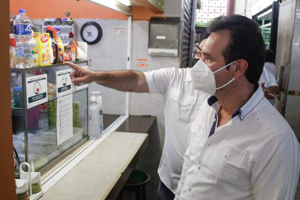 “Hoy estamos en el Mercado Municipal de Cozumel, seguimos con los recorridos para constatar que en esta etapa Naranja, en la que tenemos una reapertura escalonada de actividades económicas, los establecimientos cumplan los lineamientos para reanudar operaciones, teniendo como prioridad el cuidado de la salud de los locatarios, trabajadores y consumidores”, puntualizó Pedro Joaquín Delbouis.