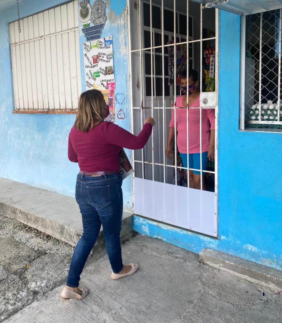 Cancún, Q. Roo, Lunes 18 de Enero de 2021, poderycrítica.- Susana Dzib González mantiene el contacto permanente con la población, guardando las medidas sanitarias por el Covid 19.