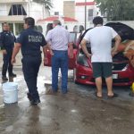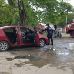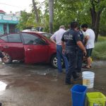 Ante lo aparatoso del hecho, vecinos salieron en su apoyo y a cubetazos iniciaron la sofocación del incendio en la parte del motor.