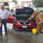 De inmediato se detuvo, solo para observar que comenzaron a salir llamas, por lo que pidió auxilio al cuerpo de Bomberos, a través del número de emergencias 911.