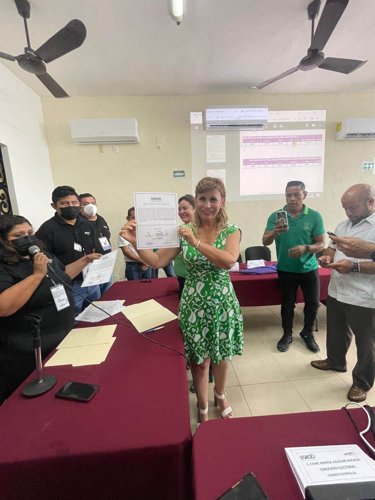 PODER Y CRÍTICA | REDACCIÓN | Después de una larga jornada de conteo en el Consejo Distrital 02, este jueves Susana Hurtado Vallejo recibió su constancia que la acredita como diputada electa para la XVII Legislatura del congreso local, tras conseguir 13 mil 782 votos, lo que representa el 31.15% de los votos en el distrito II de Quintana Roo.