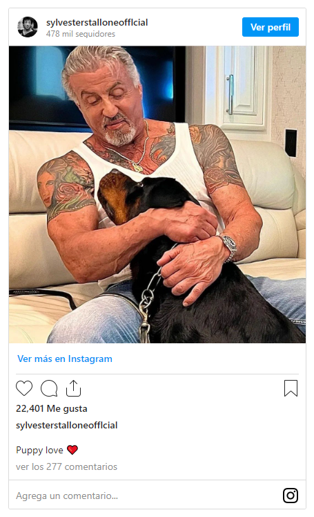 Como siempre, el mejor amigo del hombre salió al rescate y el tatuaje de Sylvester Stallone fue cubierto con el retrato de su antiguo perrito de la raza bullmastiff, de nombre Butkus, el cual salió en las primeras películas de Rocky.