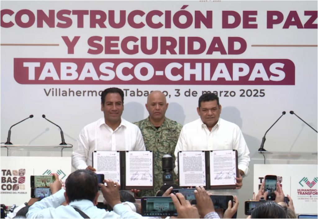 Tabasco y Chiapas firman convenio por la paz y seguridad en la región
