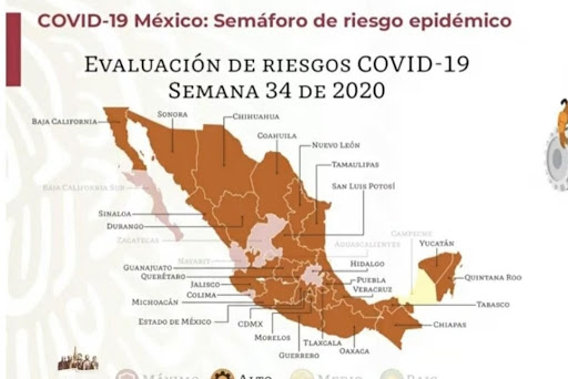 El funcionario reveló que 6 entidades permanecerán en rojo, y otras 25 en naranja y por primera vez un estado aparece en semáforo amarillo, lo cual tendrá una duración de 15 días, debido a que recientemente se acordó que los cambios en colores se efectuaran de forma quincenal.