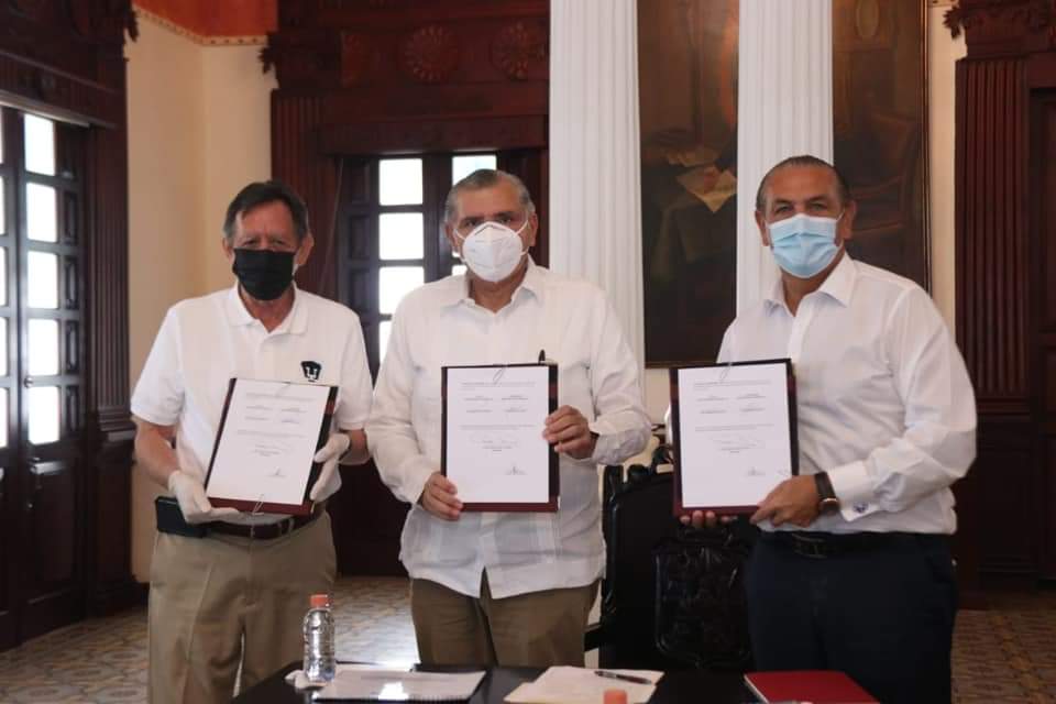 «Hace unos momentos se firmó el convenio entre Leopoldo Silva Gutiérrez, Presidente del Club Pumas de la UNAM y Ramón Neme Sastré, Presidente de Soccer Pumas de Tabasco, por el cual Tabasco tendrá la filial de los Pumas en la Liga de Expansión de la Federación Mexicana de Futbol, así mismo se desarrollará la escuela de futbol de Pumas lo que permitirá que muchos niños y jóvenes se sumen a la práctica del deporte y talentos tabasqueños puedan destacar en la práctica del fútbol profesional», destacó el gobernador de Tabasco, Adán Augusto López Hernández.