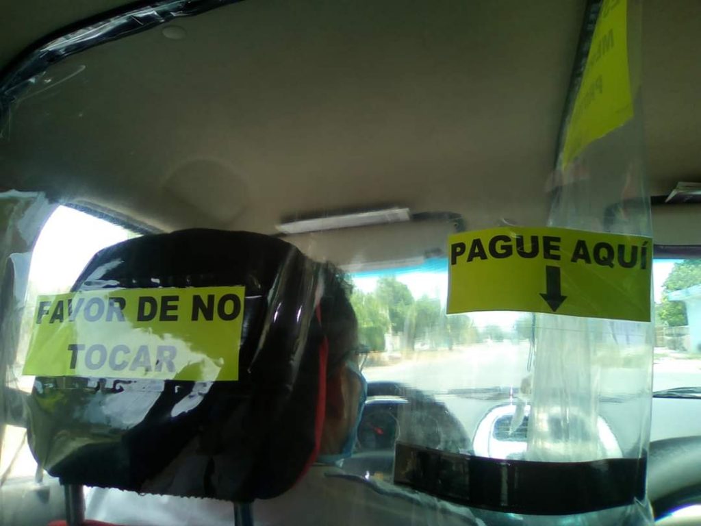 Y es que la esposa del conductor diseñó una especie de cabina para el área del chófer, independientemente a las medidas de usar cubrebocas.