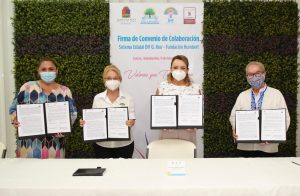 Por parte del Sistema DIF Quintana Roo también firmó el documento la directora general María Elba Carranza Aguirre y por parte de la Fundación Humbert para el Desarrollo Social y de la Biodiversidad Asociación Civil, su presidente Arturo Humberto Gutiérrez Manzano y la Delegada Regional para el Sur Sureste de la República Mexicana para la Instrumentación y Desarrollo del Plan Universal para la Prevención del Cáncer, María Candelaria Raygoza Alcocer.