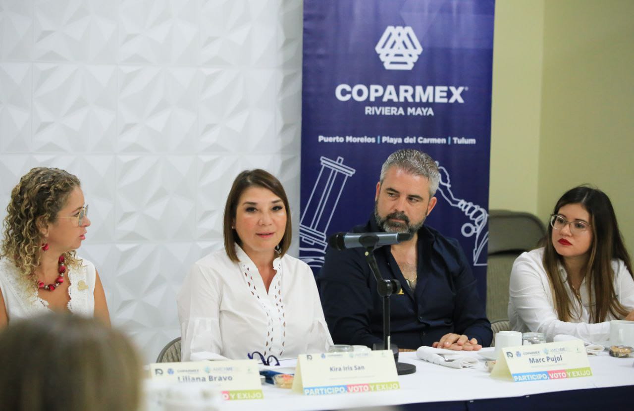 “Tengo iniciativas, las he recogido del trabajo en la calle, en reuniones con distintos grupos y asociaciones; las he recogido durante mi experiencia como abogada, son enunciativas y seguramente si ustedes trabajan en equipo conmigo las podemos enriquecer o direccionar de alguna manera correcta”, manifestó ante los socios de la Coparmex Riviera Maya.
