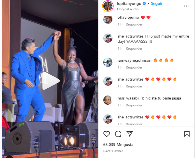 Sin embargo, Tenoch Huerta se robó la noche cuando, tras ser cuestionado sobre su música favorita, invitó a bailar a Lupita Nyong’o. La actriz se quitó su majestuoso abrigo rojo que cubría su ceñido vestido negro para poder sacar a relucir sus mejores pasos a rito de Suavemente -tema de Elvis Crespo-con su compatriota.
