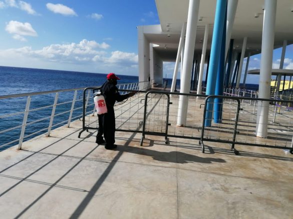 En los muelles de Cozumel e Isla Mujeres, administrados por la APIQROO, no se baja la guardia ante la contingencia sanitaria que continúa afectando al estado de Quintana Roo, por lo que se siguen aplicando las acciones necesarias para proteger a los usuarios que se mueven en estas terminales marítimas.