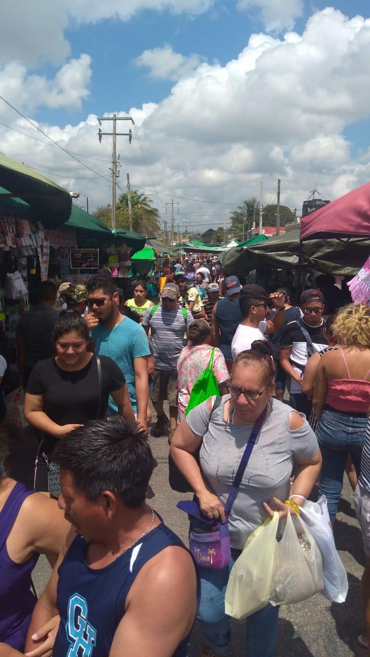 Este día se pudo apreciar en diversas calles de la Supermanzana 100 que el tianguis se instaló como cada domingo y la gente acudió a ver o comprar algún artículo o producto.
