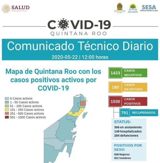 Al día viernes 22 de mayo, mediodía, la Secretaría de Salud estatal, reportó que de jueves a hoy se registraron 89 casos positivos de coronavirus.