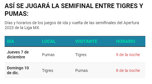 HORARIO Y DÓNDE VER EL JUEGO DE IDA ENTRE PUMAS Y TIGRES