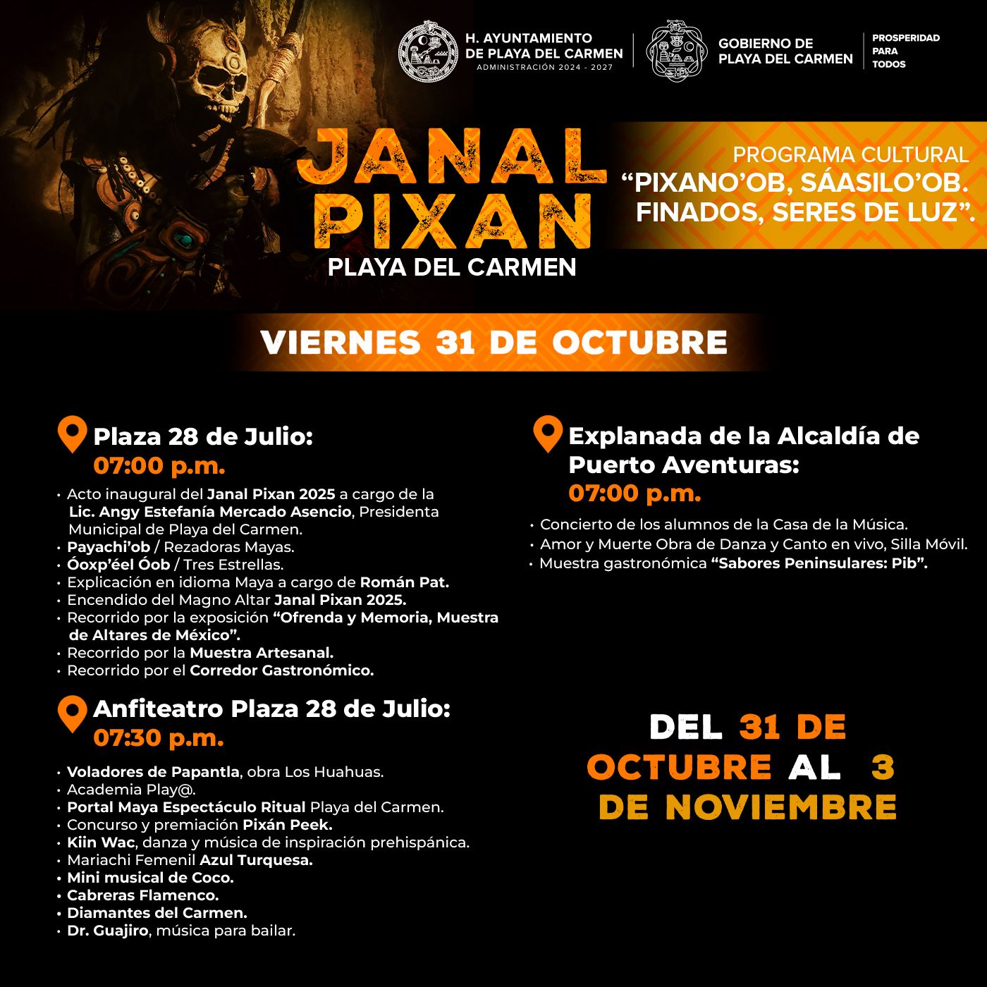 Poder y Crítica | Redacción | Todo se encuentra listo para que este viernes 31 de octubre den inicio en Playa del Carmen las festividades del Janal Pixan 2025 “Pixano’ob Sáasilo ‘ob. Finados seres de luz”, con acceso totalmente gratuito a todas las actividades para las y los playenses y turistas, a fin de mantener viva esta tradición ancestral.