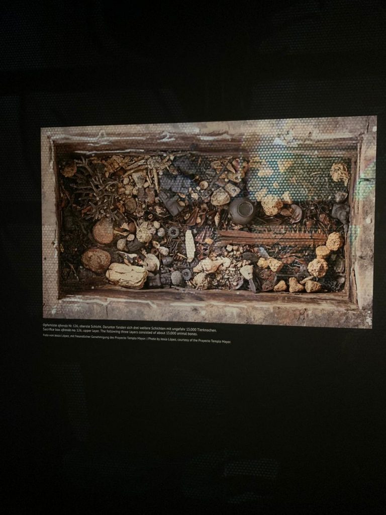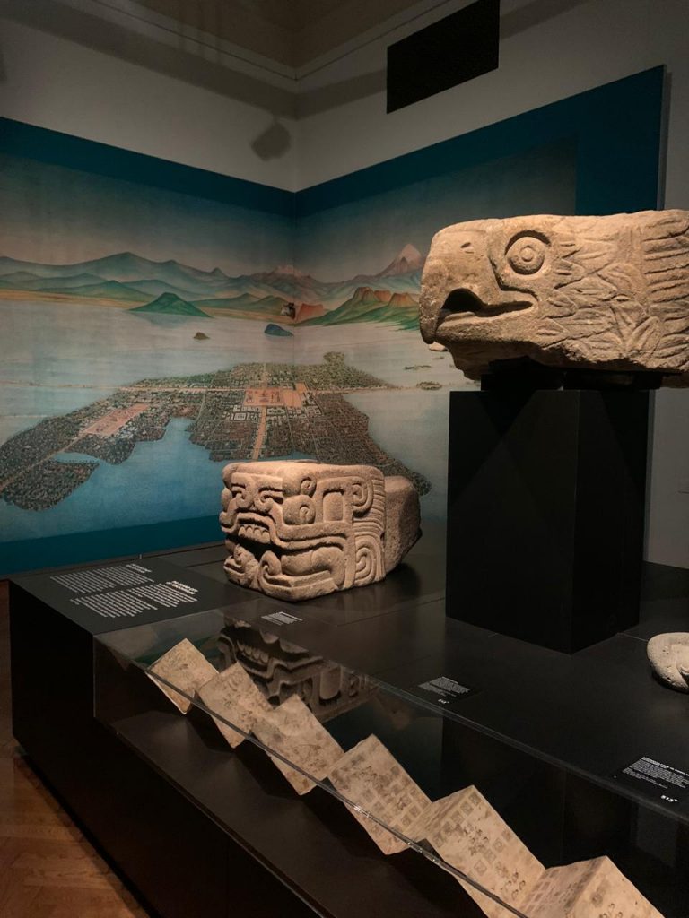 La exhibición, que inició su periplo europeo el año pasado en Stuttgart, Alemania, incluye más de 200 piezas y objetos en préstamo de museos y colecciones mexicanos y europeos, entre los cuales destacan los acervos de los museos Nacional de Antropología y del Templo Mayor; así como con la asesoría científica de expertos, como los arqueólogos Eduardo Matos Moctezuma, Leonardo López Luján y Raúl Barrera Rodríguez, por parte de la Secretaría de Cultura del Gobierno de México, a través del INAH.
