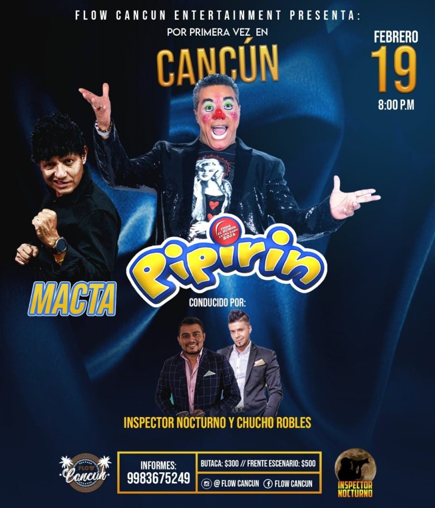 Actualmente el Payaso Pipirin es considerado uno de los personajes humorísticos en tendencia más importantes del país, pues en sus redes sociales ha ganado bastante popularidad con sus videos y ahora debido a que las condiciones de salud han cambiado en el país, decide llegar por primera vez al caribe mexicano presentando su show.