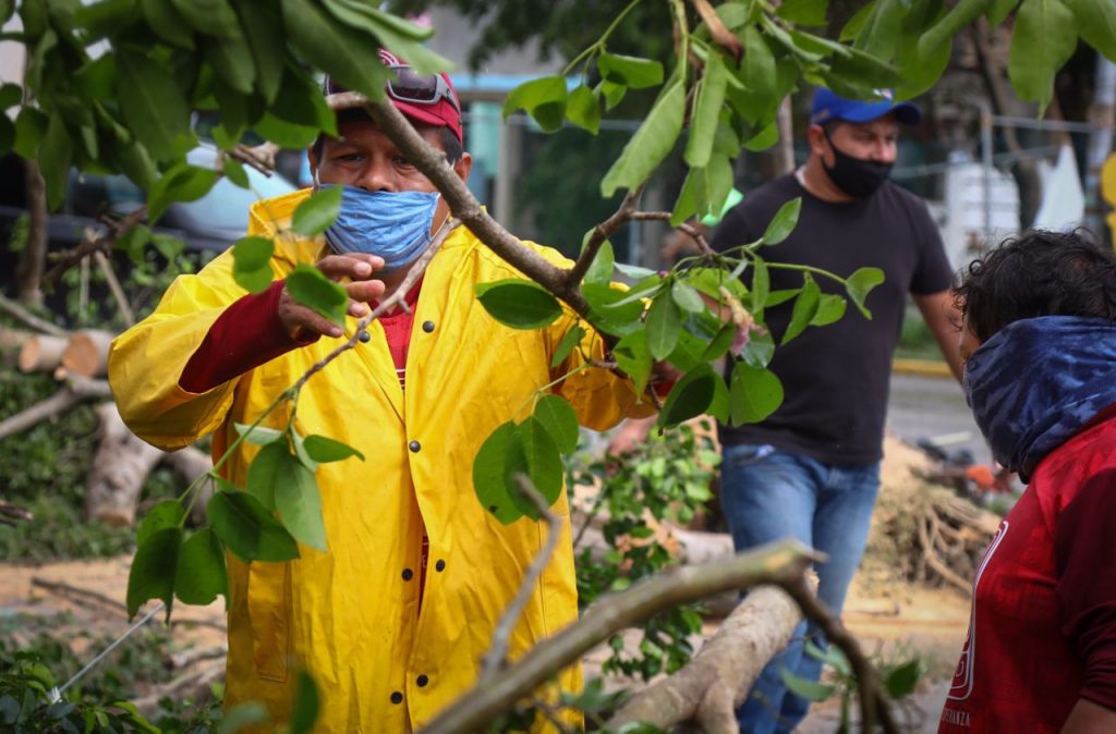 La presidenta municipal, Laura Beristain Navarrete, desde su casa en aislamiento social por COVID-19-se hizo cargo de supervisar las tareas de evacuación, seguridad ciudadana y limpieza del municipio a causa del embate ciclónico.