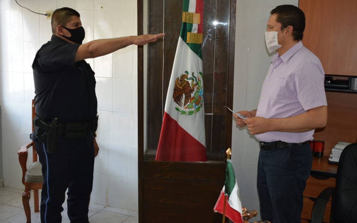 Atestiguaron el nombramiento el comisionado de la Policía Estatal, José del Carmen Castillo Ramírez y el Director de la Policía Estatal, Leonardo Arturo Leyva Ávalos.