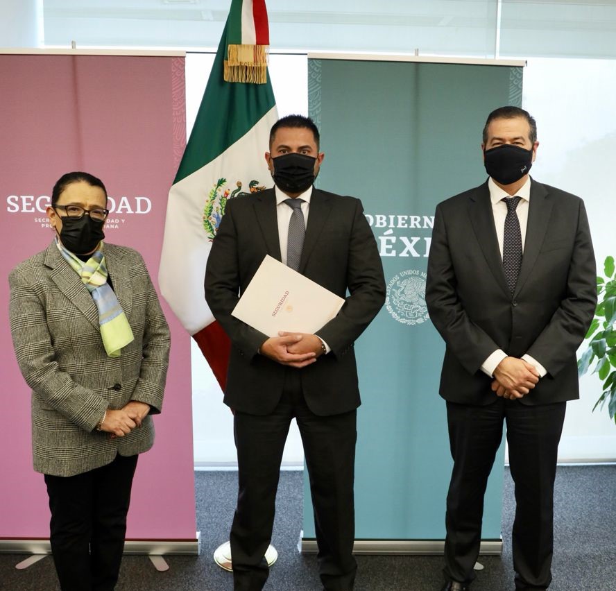 En sus oficinas, Rodríguez Velázquez le hizo entrega del nombramiento, acompañada por el subsecretario de Seguridad Pública, Ricardo Mejía Berdeja.