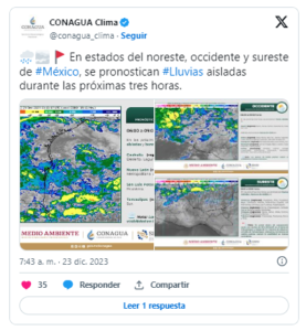 Ante estas condiciones climáticas adversas, la Conagua hace un llamado a la población para que esté atenta a los avisos oficiales, siga las recomendaciones de protección civil y tome las medidas necesarias para resguardar su integridad y la de sus propiedades. Se sugiere evitar transitar por zonas montañosas afectadas por la posible caída de nieve o aguanieve y extremar precauciones en las áreas propensas a inundaciones.