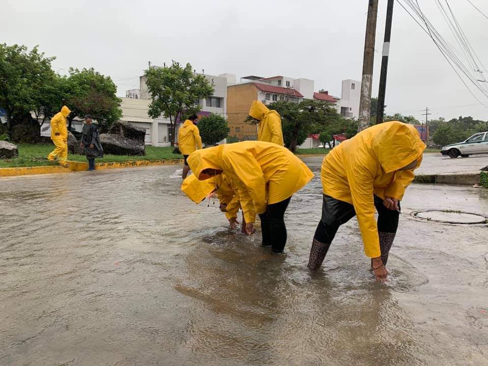 «Hay fuertes vientos e intensas lluvias en nuestro municipio, las brigadas por Cancún se encuentran trabajando 24/7 en la limpieza de calles y desazolve de pozos de absorción», expresó la presidente municipal, Mara Lezama.