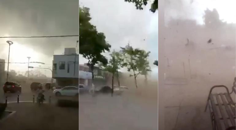 Imágenes en redes sociales muestran la formación del torbellino en el cielo y su posterior aterrizaje en tierra.