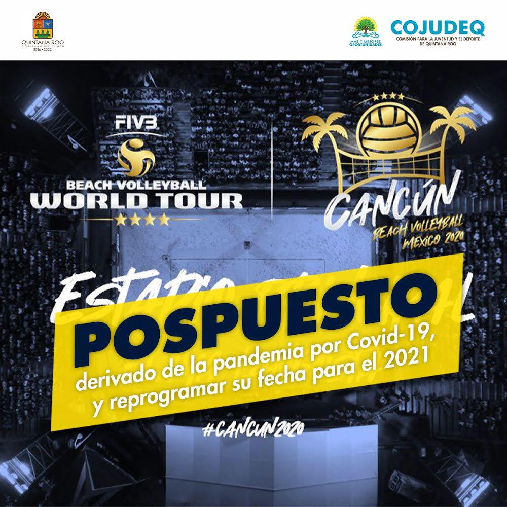 Cancún, Q. Roo, martes 13 de Octubre de 2020, poderycrítica.- Los organizadores del evento deportivo del Tour Mundial de Voleibol de Playa 4 Estrellas con sede en Cancún, acordaron no realizarlo este año tomando en consideración las circunstancias actuales en el escenario internacional derivado de la pandemia por Covid-19, y reprogramar su fecha para el 2021.