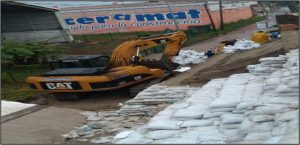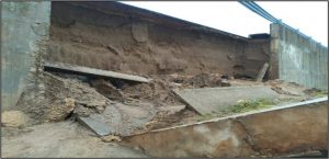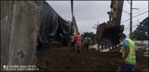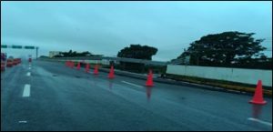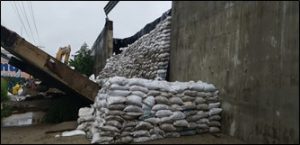 Por lo que respecta a Tabasco, se presentó una socavación local en el muro de contención del terraplén de acceso al puente la Pigua III, en el kilómetro 3+079, lo que ocasionó el desplome de dos módulos del muro. Se procedió a restringir el paso vehicular en dos carriles de los cinco que componen la vía, mediante la colocación de señalamiento de protección de obra y a colocar un bordillo con mezcla en frío para evitar que el escurrimiento sobre la superficie de rodamiento caiga sobre el terraplén de arena.