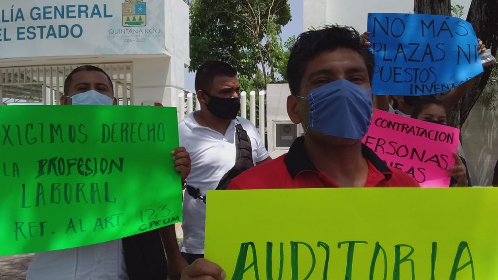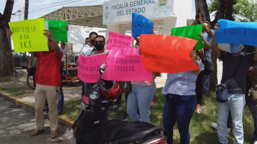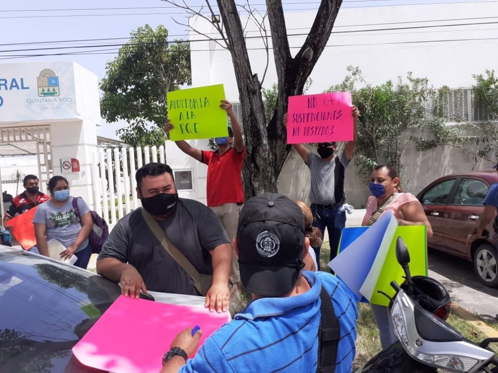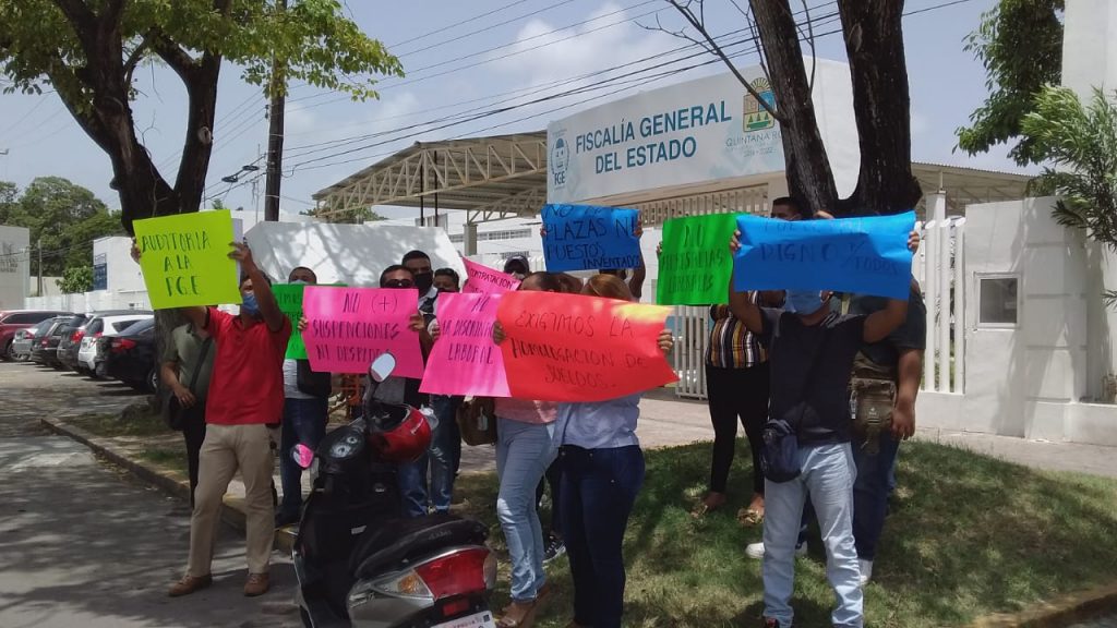 Decenas de trabajadores protestaron en las afueras de las oficinas de la FGE de Chetumal y Cancún, con pancartas y consignas solicitando incluso auditorías a la institución.