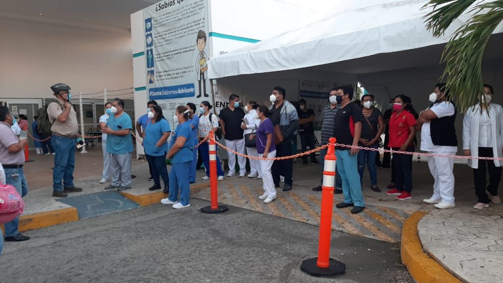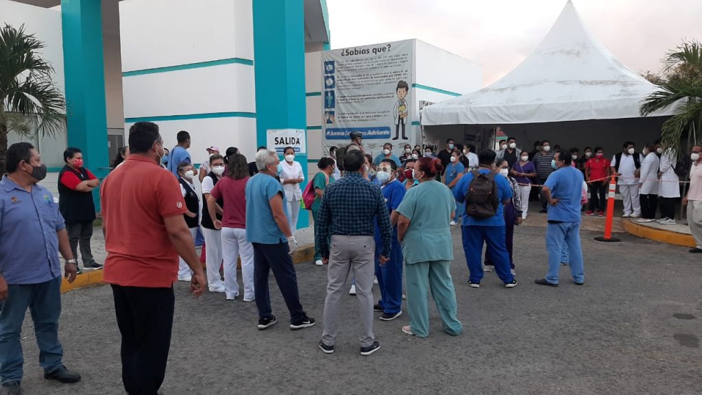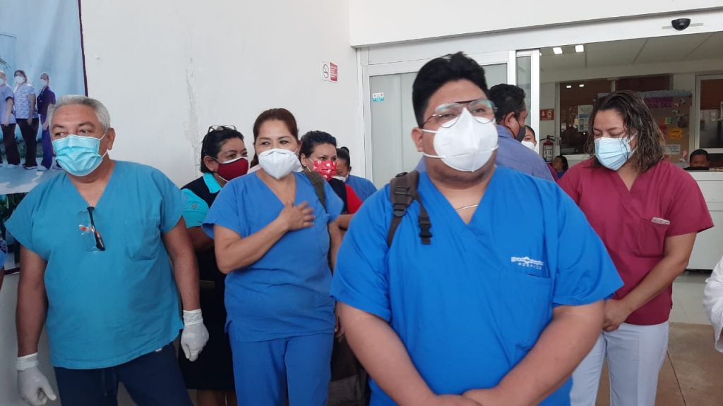 Poco más de medio centenar de enfermeros y médicos del hospital general de Chetumal realizaron un paro laboral a partir de las 7 de la mañana de este miércoles 16 de diciembre en la ciudad capital, pues hasta el momento la Secretaría de Salud de Quintana Roo no les ha pagado el “Bono Covid”, el cual anunciado por el gobierno federal para los trabajadores de la salud de primera línea que atienden a pacientes con Coronavirus.