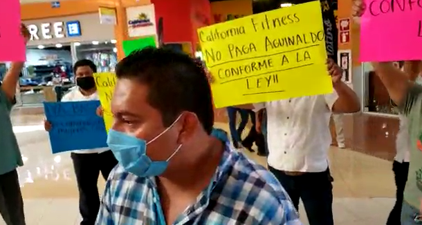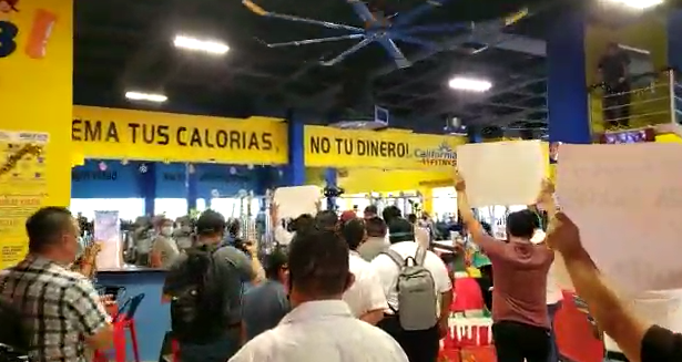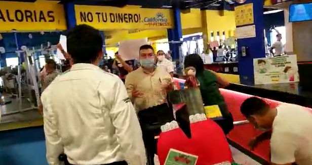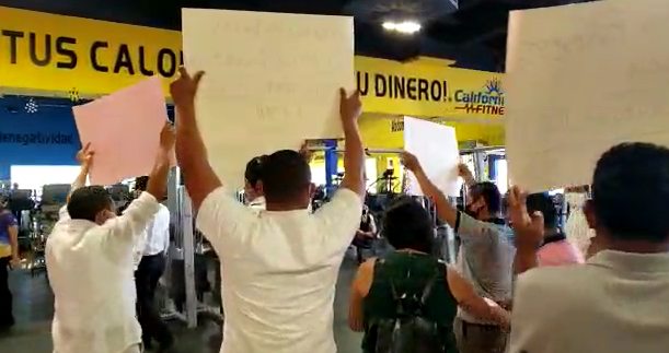 Playa del Carmen, Q. Roo, Lunes 21 de Diciembre de 2020, poderycrítica.- Trabajadores del gimnasio California Fitness de Playa del Carmen se manifestaron la mañana de este lunes al interior de las instalaciones para exigir el pago de aguinaldos correspondiente a este año.
