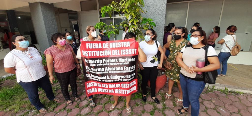 Chetumal, Q. Roo, Lunes 04  de Octubre de 2021, poderycrítica.-  Son más de 120 trabajadores y 40 eventuales del ISSSTE en Chetumal se manifestaron por la falta de insumos y equipamiento para seguir trabajando en esta pandemia y para atención a los derechohabientes.