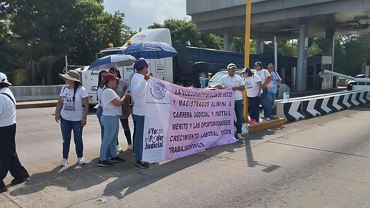 PODER Y CRÍTICA | REDACCIÓN | Trabajadores del Poder Judicial del Décimo Distrito protestaron en las casetas de cobro de la carretera Villahermosa – Macuspana, donde Ruber Alberto Rodríguez Mosquera, secretario del Tribunal Colegiado de Apelación, advirtió sobre una posible movilización durante la toma de protesta de Javier May como gobernador de Tabasco, el próximo 30 de septiembre.