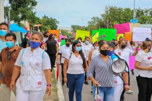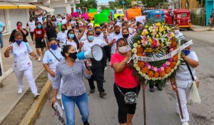 Los manifestantes arribaron al acceso al cenote en el fraccionamiento Puerto Maya, donde fue asesinada Lucely, y allí depositaron una corona de flores. Una a una, las trabajadoras del Bahía Príncipe fueron dejando velas en honor a la difunta.