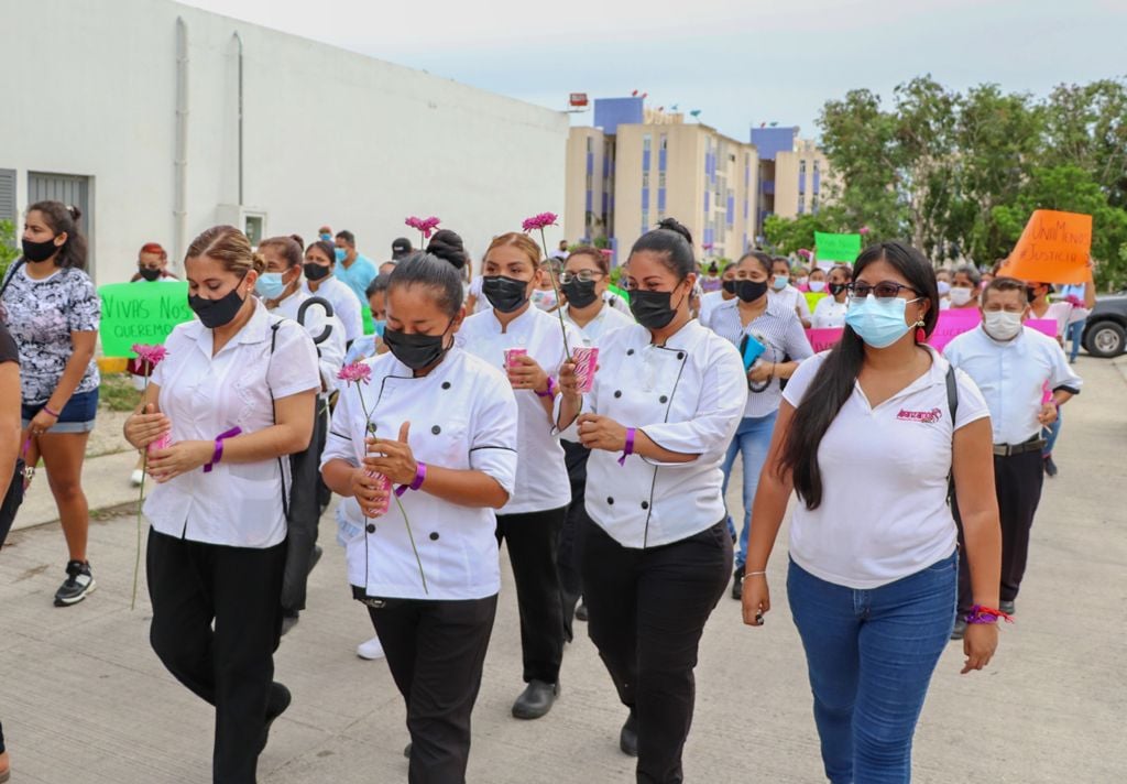 Puerto Aventuras, Q. Roo, Lunes 06 de Septiembre de 2021, poderycrítica.- Cientos de mujeres y hombres marcharon esta tarde por las calles de Puerto Aventuras, para recordar a Lucely, joven que víctima de feminicidio el pasado 25 de agosto.