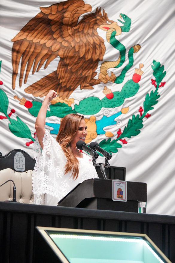 Desde el Congreso del Estado, la primera mujer gobernadora de Quintana Roo afirmó que estamos escribiendo las páginas más bellas de la historia de nuestro estado convencidos que si al final del camino las y los quintanarroenses somos más libres, gozamos de un bienestar y una prosperidad compartida, hemos enterrado todo tipo de discriminación contra las mujeres y somos más justos, habremos hecho bien las cosas.