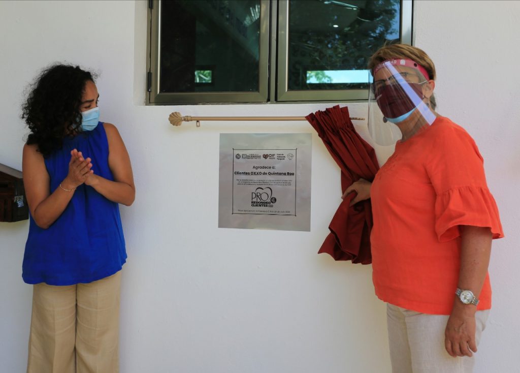 La presidenta municipal de Solidaridad, Laura Beristain Navarrete, acompañada de la presidenta honoraria del DIF, Karla Robles Miranda y representantes de la cadena comercial Oxxo, reconoció el esfuerzo que realiza el Sistema DIF en Quintana Roo, a cargo de la señora Gabriela Rejón, a favor de los sectores vulnerables.