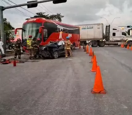 El siniestro ocurrió alrededor de las 07:00 horas cuando un camión de la línea ADO, proveniente de México y con destino al centro de la ciudad, fue impactado por un automóvil compacto.